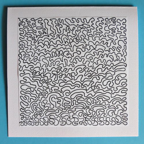 With the fold at the top, center and glue the piece of paper with the squiggles on to the front of the card.