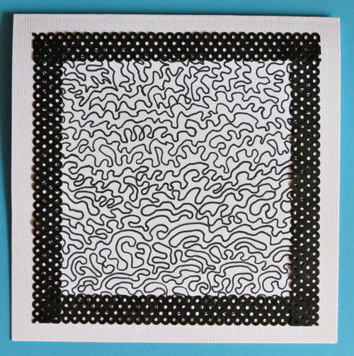 Use the lace tape to add a frame around the paper with the squiggles, and cut off any protruding edges.
