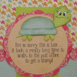 "I'm so sorry this is late...it took a really long time to walk to the post office to get a stamp!"