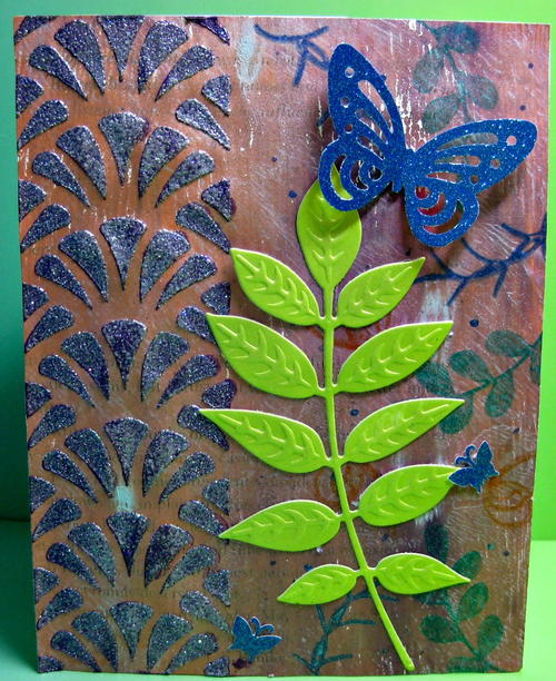 This Butterfly Garden Mixed Media Card has a lot of sparkling charm. Use a unique technique to add texture and embellishment to your flora and fauna paper pieces.