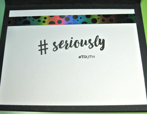 Stamp the hashtag sentiments with black ink on a white piece of cardstock for the inside of the card.