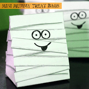 Halloween treats need a sweet place to sit. Make these Mummy Treat Bags for your kids to carry on Halloween night. They'll love showing off their decorated treat bags as they go from door to door to collect goodies and sweets. This is an easy, homemade Halloween craft that anyone can make. Grab some white paper or card stock and check out this tutorial. When you're finished, individualize each bag by giving it a silly face. You can also let your kids help you decorate the mummies' faces.