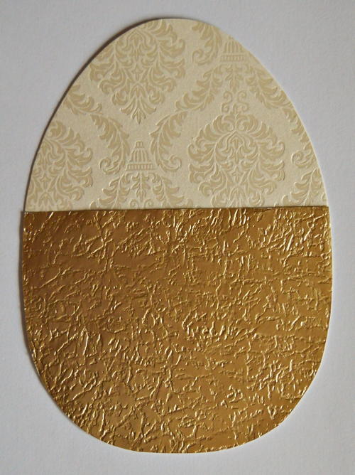 Glue the gold metallic leather textured cardstock to the bottom half of the egg and cut off any protruding edges.