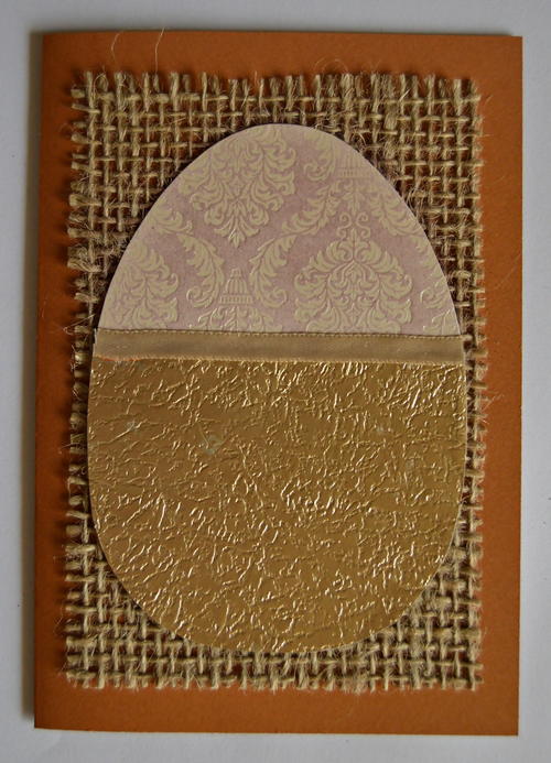 With the fold at the left, center and glue the hessian to the front of the card.