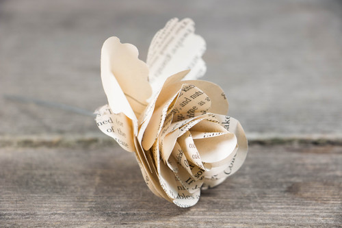 Book page flowers range from simple to complex as well as delicate to substantial. You can combine the book pages with other elements, like tissue paper or jewels.