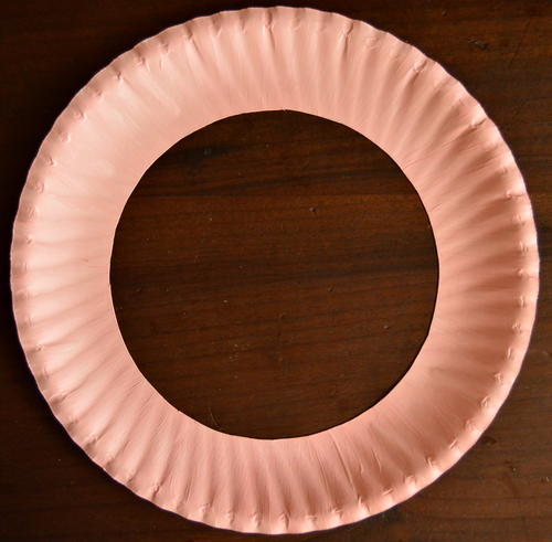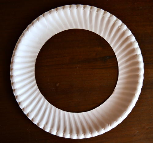 Place and center the 5.6" plastic lid onto the paper plate and trace all around it.