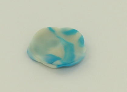 Create the Bubbles Condition ¼ bar of the premo! White Translucent as described above. Form a long coil from the Translucent. Using a pinch of conditioned Turquoise form a long coil, it should be very thin. Twist the 2 coils together and then form a ball and mix until they are marbled, not thoroughly mixed.