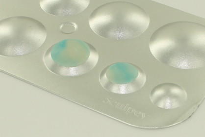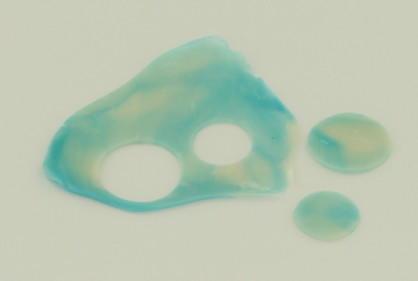 Bake the circles on the hollow bead maker as directed above. You can bake the small circles on the larger half-spheres, they will be less curved. Doing this will create a variety of circle sizes and depths. You may need to do this in two separate bakings. Allow to completely cool. Remove bubbles from baker. If the edges of your bubbles are slightly raged use the sand paper to even them out.